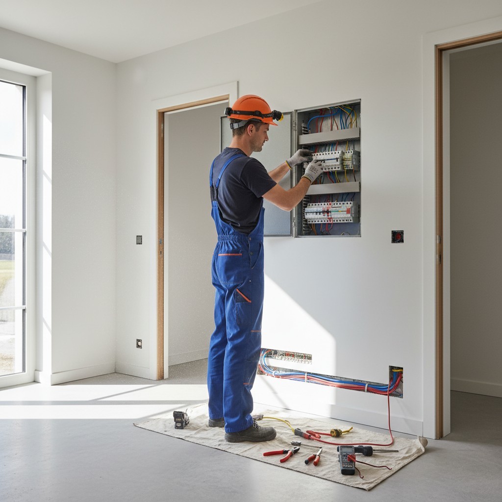 Nous réalisons l'installation électrique complète de votre habitation ou de vos locaux professionnels, en neuf comme en rénovation. Mise en conformité, pose de tableaux électriques, raccordements : nous assurons un travail de qualité pour votre sécurité.